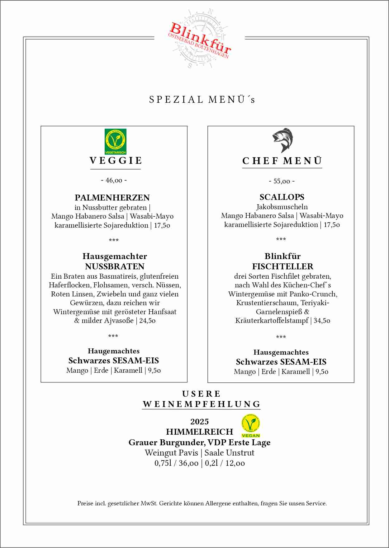 Im Fischrestaurant Blinkfür in Boltenhagen servieren wir frischen Fisch, regionale Klassiker und moderne Ostsee‑Küche. Unsere Gerichte werden täglich mit hochwertigen Zutaten und viel Liebe zum Detail zubereitet. Entdecken Sie die Vielfalt der Nord‑ und Ostsee – von traditionellen Fischgerichten bis zu saisonalen Spezialitäten.